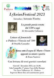 LykeiosFestival 2023 + Aggiungi a Google Calendar + iCal / Outlook export Data Gio 07 Dic 2023 Expired! Ora 16:00 Luogo Padova - Casa della Rampa Organizzatore Gruppo90-ArtePoesia