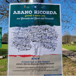 Abano Terme, Giardino dei Giusti, Manifesto commemorativo